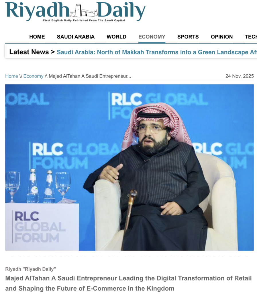 Al Riyadh Daily, Majed AlTahan A Saudi Entrepreneur Leading the Digital Transformation of Retail and Shaping the Future of E-Commerce in the Kingdom, November, 2025